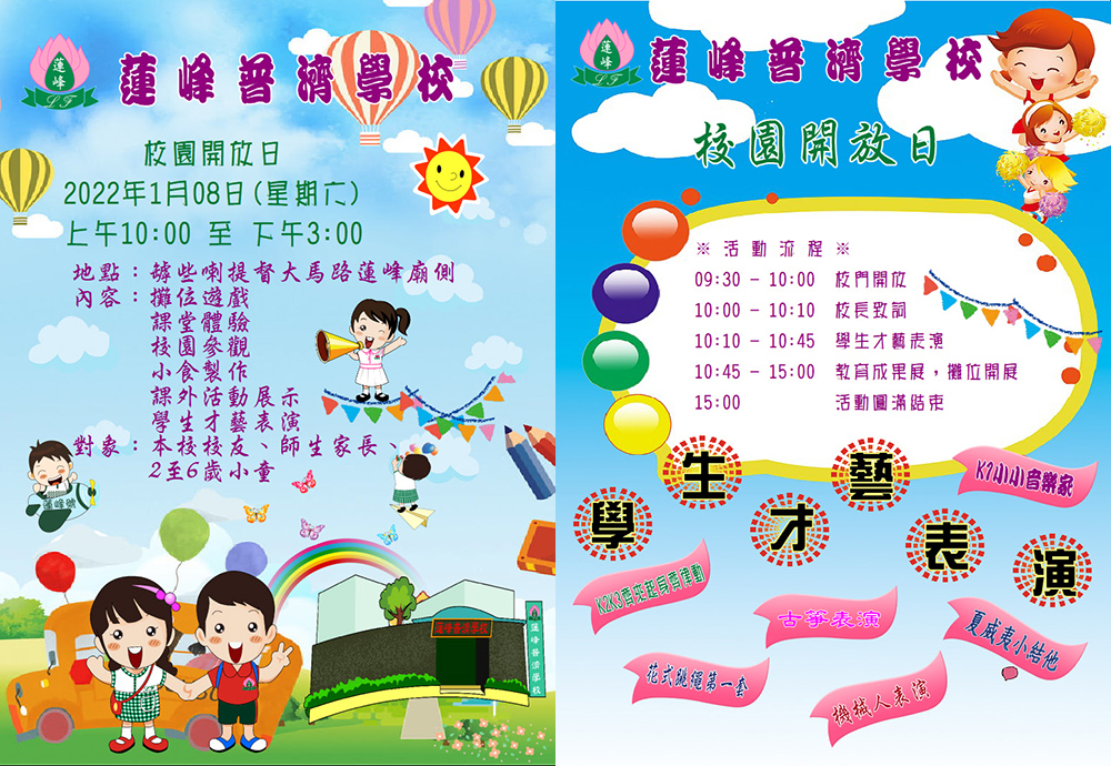 「報名表」「校服式樣」 「學生須知」 「天氣措施」