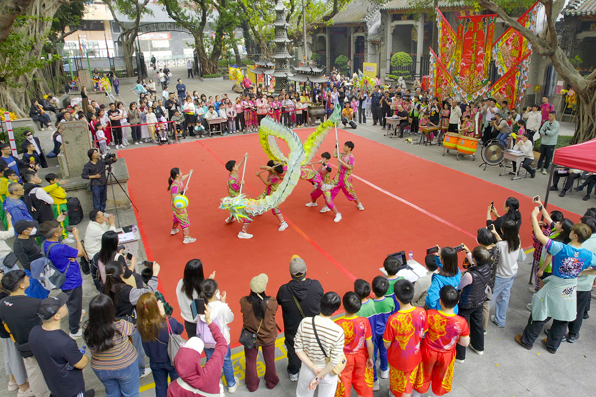 由蓮峰普濟學校主辦,澳門羅梁體育總會協辦的“慶賀蓮峰普濟學校建校一百零五周年暨迎澳門回歸二十六周年、聯校(五節龍、擊鼓)比賽”昨日在蓮峰廟舉行,活動吸引本澳二十所學校超過三百五十名學生參與,規模為歷屆之最。主辦方期望藉活動推動中華優良傳統發揚光大,說好中國故事,說好舞龍故事。